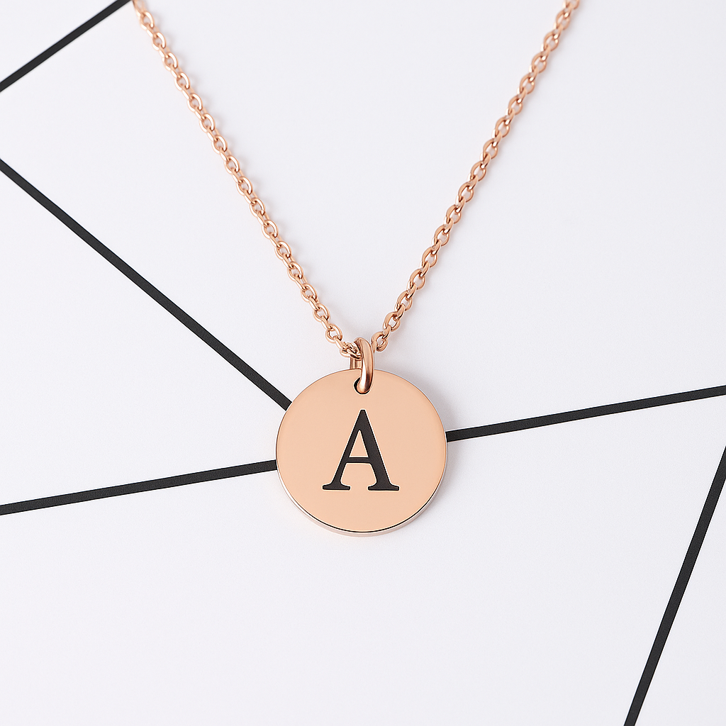 Unsere elegante Halskette aus hochwertigem chirurgischem Edelstahl ist das perfekte Accessoire für jeden Tag – schlicht, stilvoll und individuell. Der runde Anhänger kann mit einem Wunschbuchstaben graviert werden und wird so zu einem persönlichen Schmuckstück mit Bedeutung.